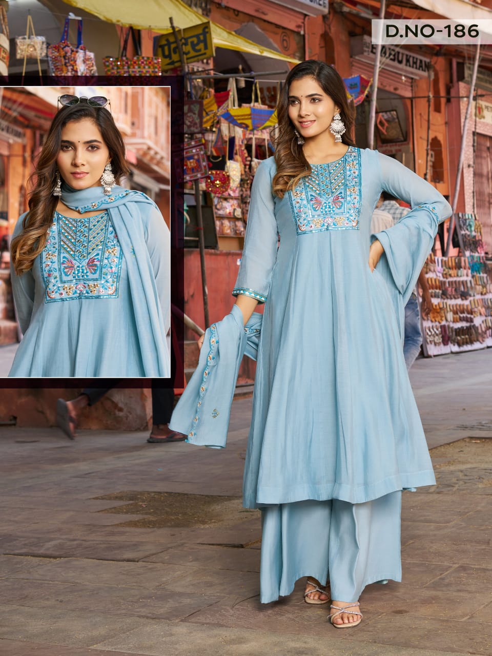 | Catalog Name | Alinee 186 And 187 Chanderi Silk Kurti Pant And Dupatta Collection |