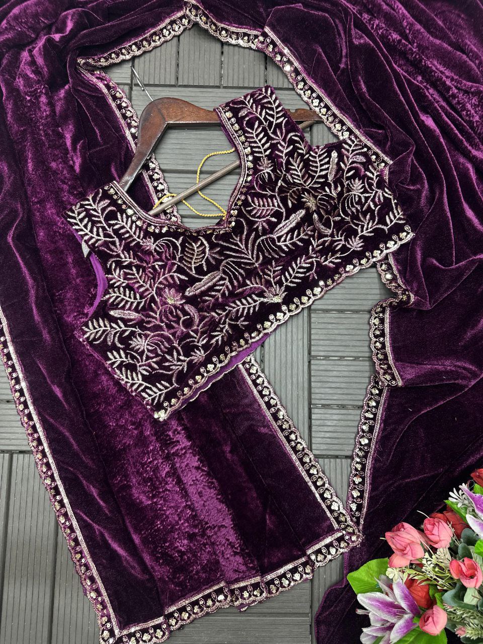 | Fabric Description | Saree: Heavy Viscose Velvet With Embroidery Sequence work | Blouse:- Viscose Velvet With Embroidery Sequence work | Blouse Size :- Full Stitched upto 42 (Master Copy) |