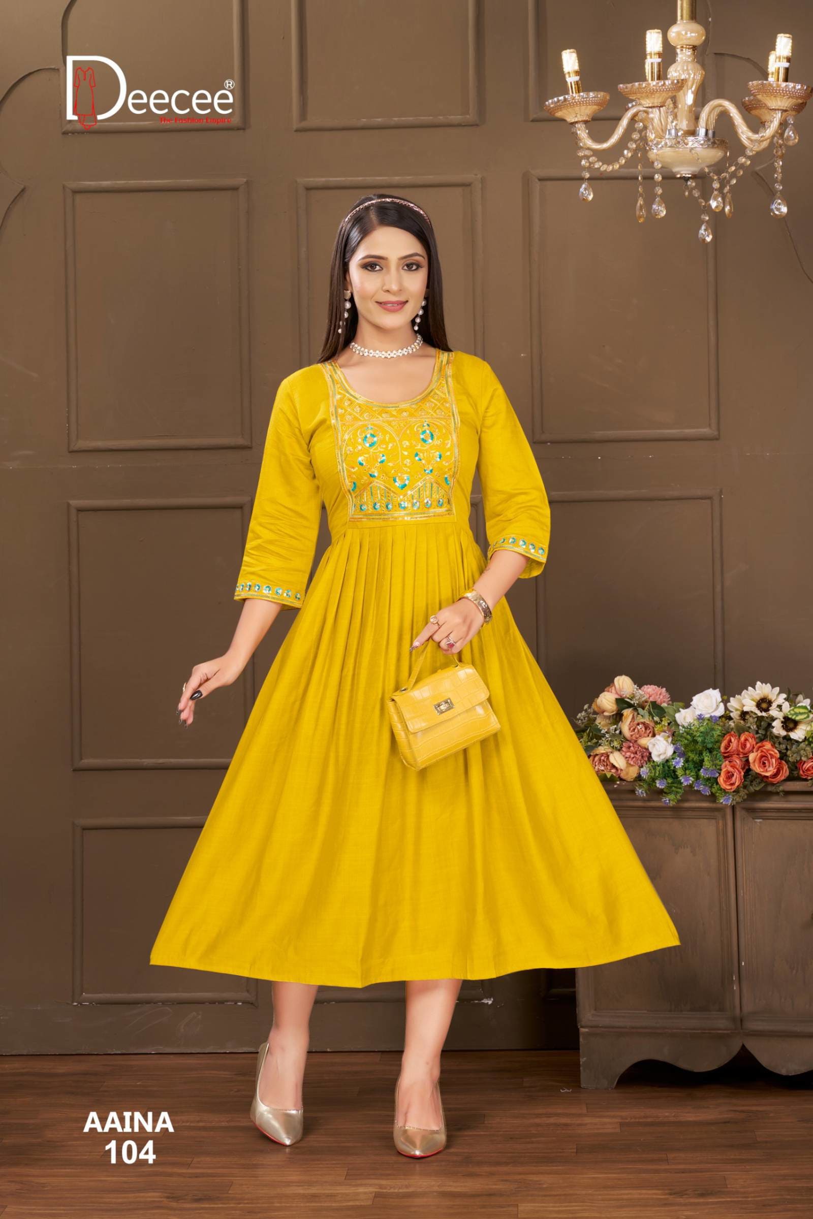 Discover the Deecee Aaina Vartican Plain Long Flared Anarkali Kurtis Collection, crafted with elegance and comfort. Perfect for festive and party wear fashion.
