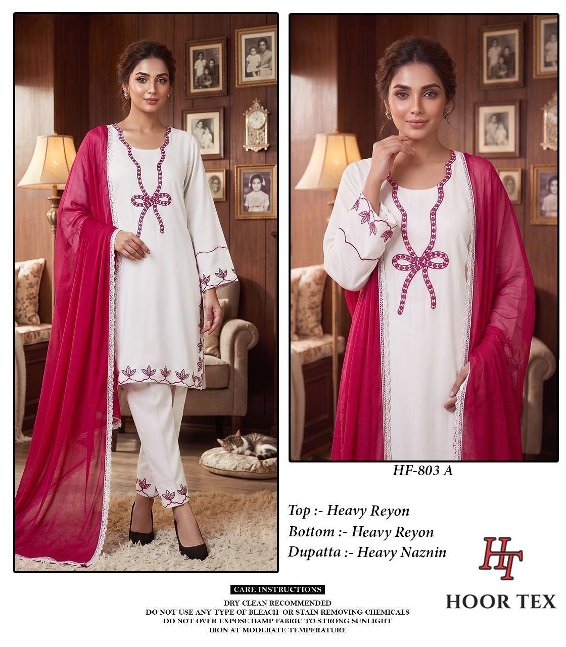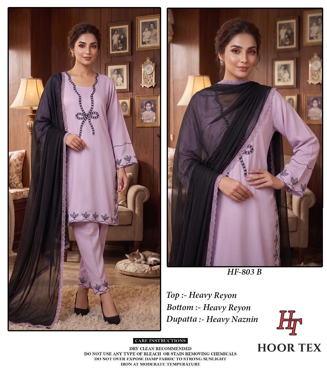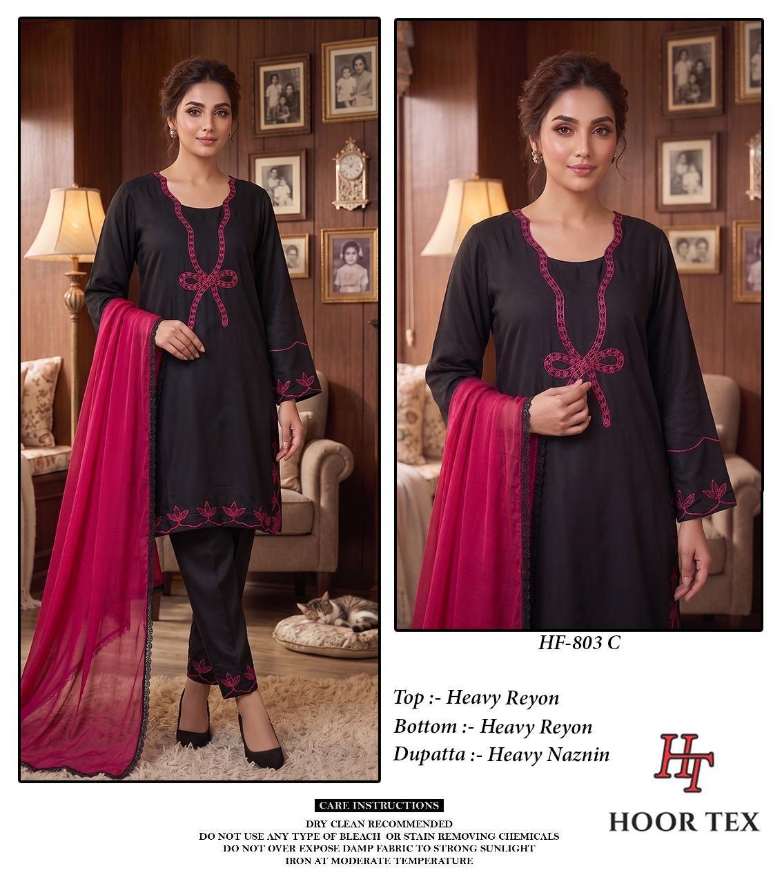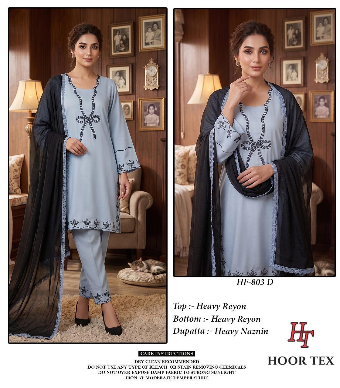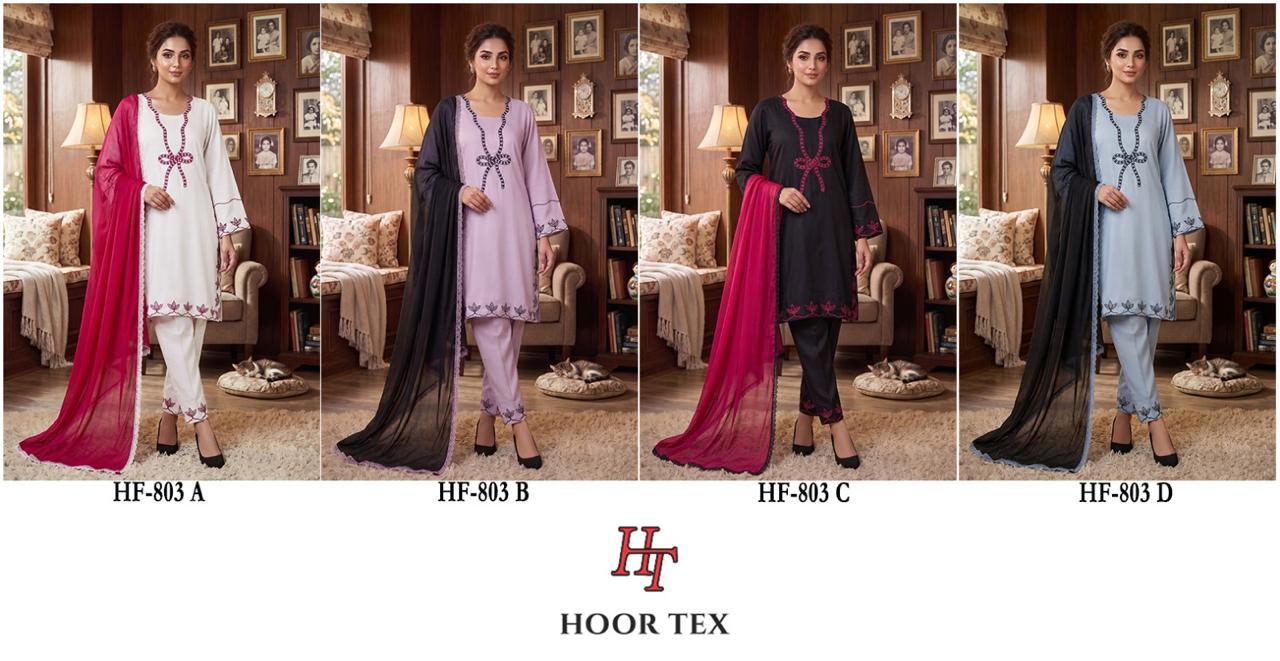 The Hoor Tex 803 A To D Rayon Readymade Salwar Kameez collection is an excellent choice for boutiques, wholesalers, and online sellers who want to offer stylish and comfortable ethnic wear. Retailers focusing on embroidery work readymade salwar suits can expand their collection with trendy and high-demand designs that attract repeat buyers.
