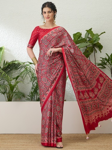 | Fabric Description | Saree :- Semi Modal Ajrakh Printed Saree Collection |