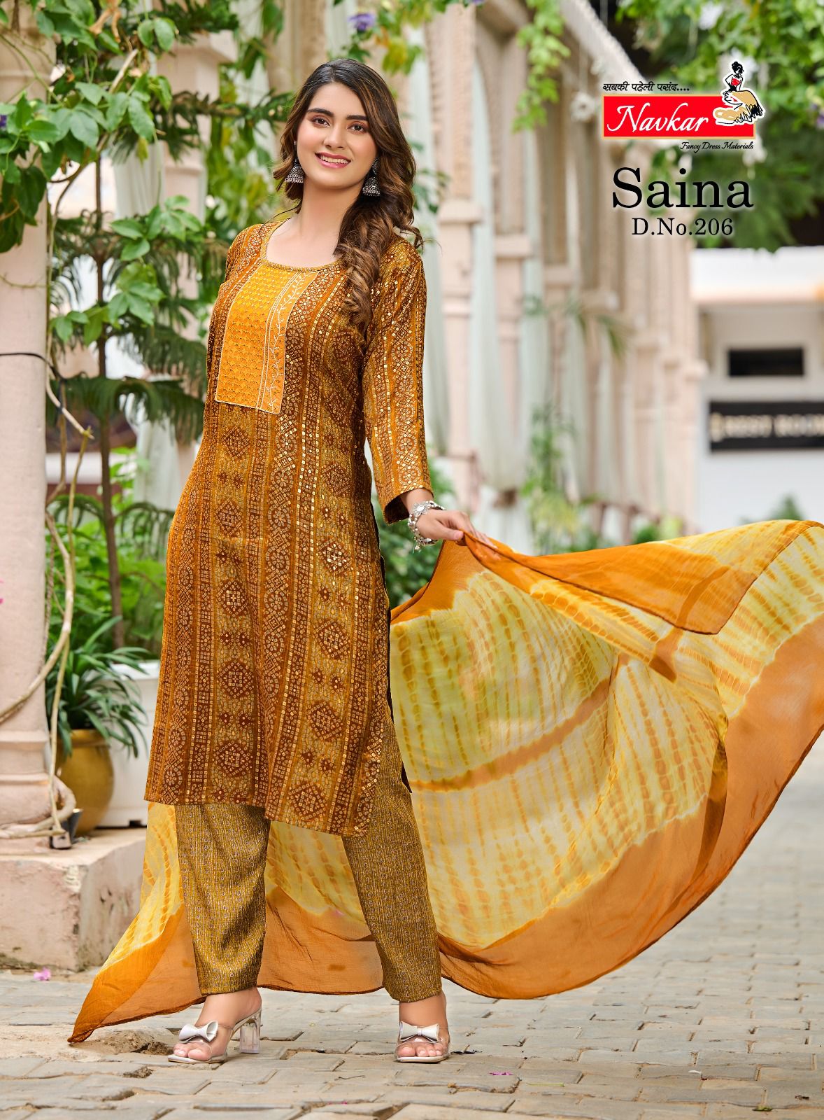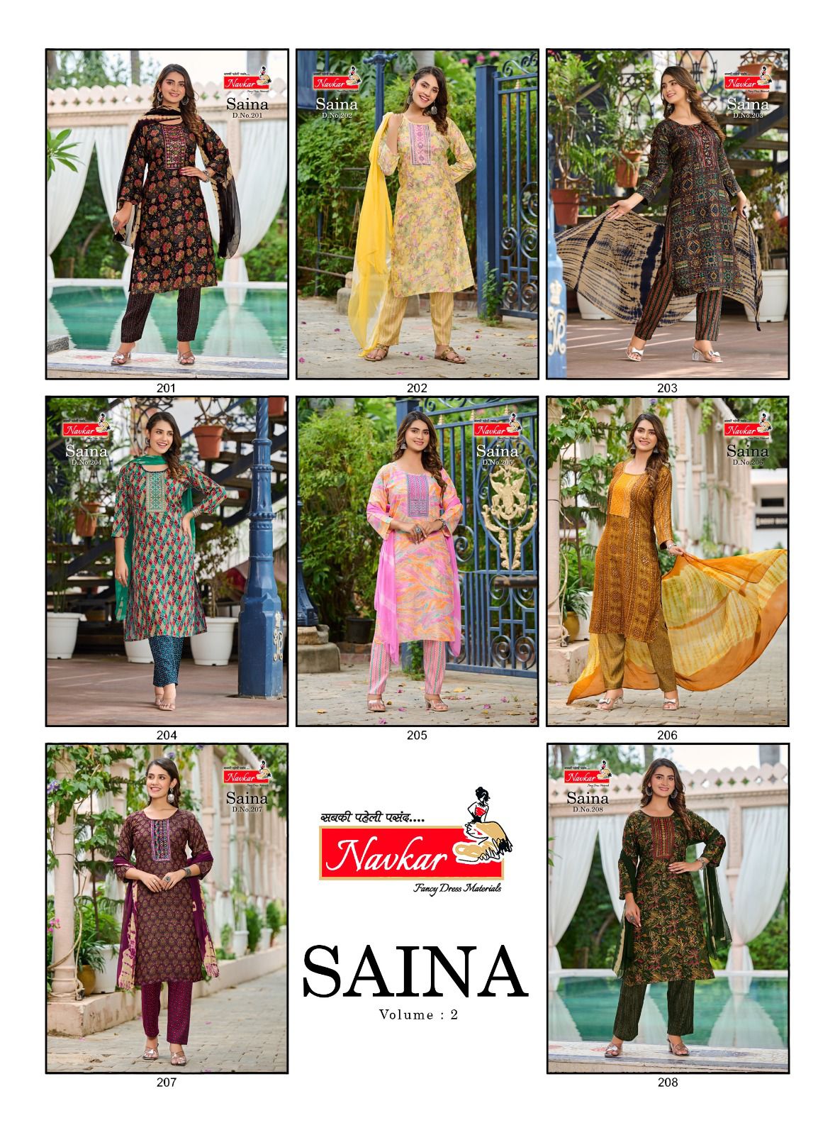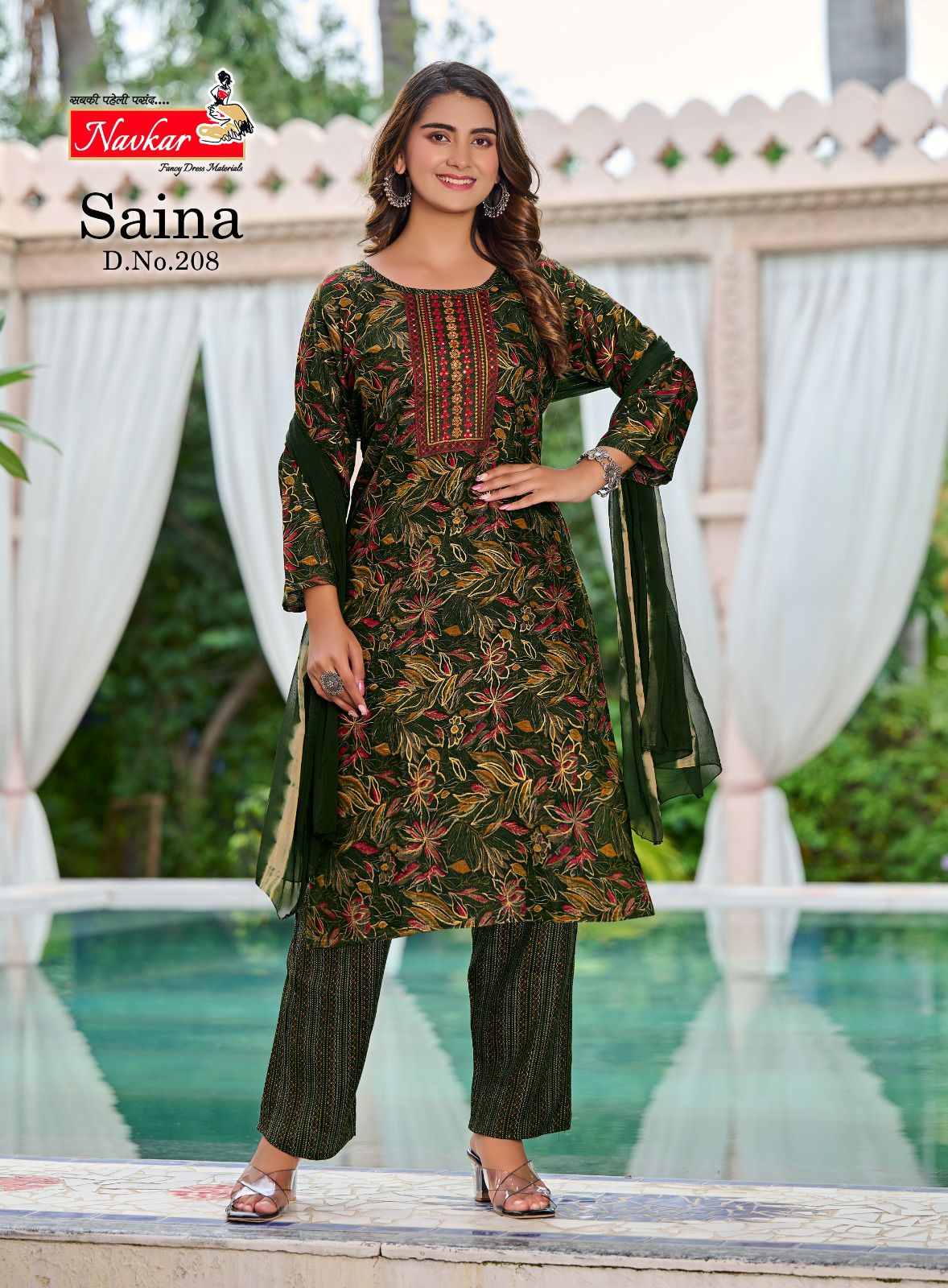 | Catalog Name | Navkar Saina Vol 2 Rayon Embroidery Kurti Pant With Dupatta |