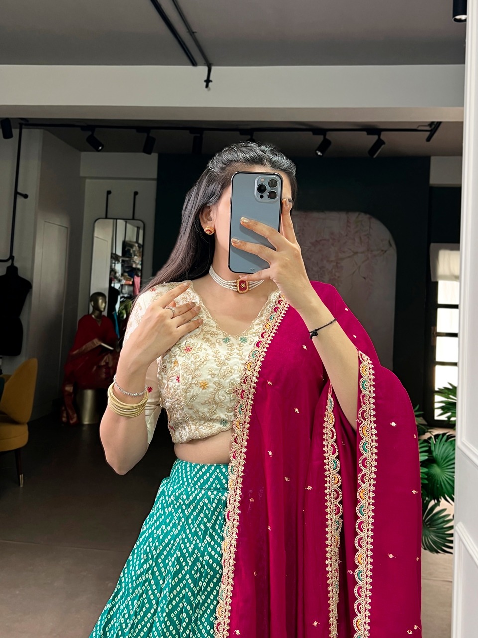 This collection is crafted using high-quality silk fabric that adds richness and elegance to every outfit. Silk is known for its smooth texture, natural sheen, and luxurious appeal, making it perfect for special occasions. The fabric drapes beautifully, enhancing the overall look of the lehenga choli.