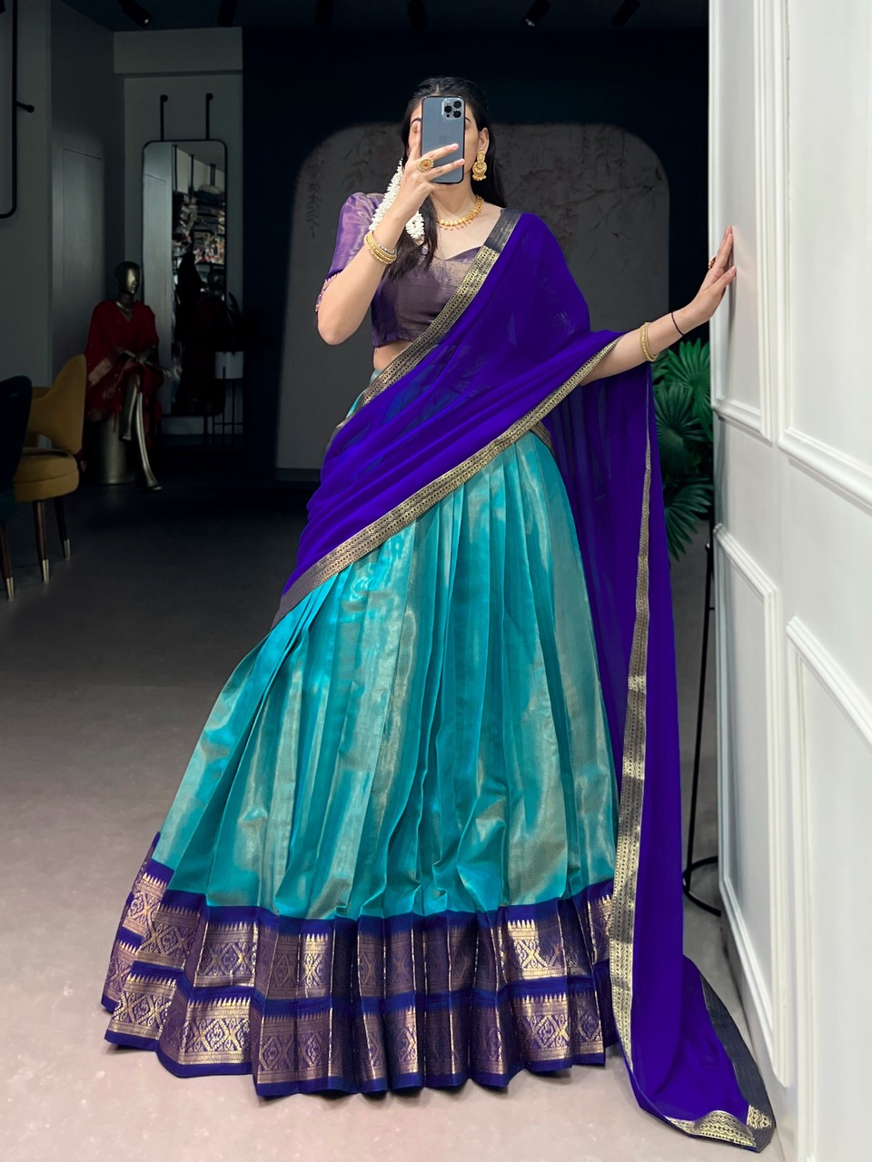 This collection is specially designed to reflect the cultural beauty of south indian lehenga choli for women, making it ideal for weddings, festive celebrations, and traditional ceremonies. The elegant weaving patterns and vibrant color combinations highlight the beauty of traditional silk craftsmanship. Businesses sourcing at competitive kanchipuram silk lehenga choli wholesale price rates can attract customers looking for luxurious and authentic South Indian outfits.